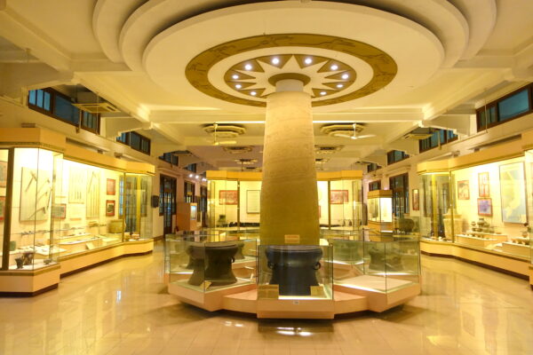 The main permanent exhibition is comprised of 18 pieces from the 7th to the 20th centuries – they were selected by the Prime Minister of Vietnam as  “national treasures”. The collection includes bronze drums and Ho Chi Minh’s prison diary. The museum itself houses around 200,000 items, spanning the Neolithic age, Bronze age, Sa Hunh, Oc Eo, and Hung periods, the Nguyen dynasty, the Cham period, and northern Vietnam’s Dong Son, a culture that existed about 1000 BC-100 AD.  It was earlier used as an archaeological research institution of the French School of Asian Studies.