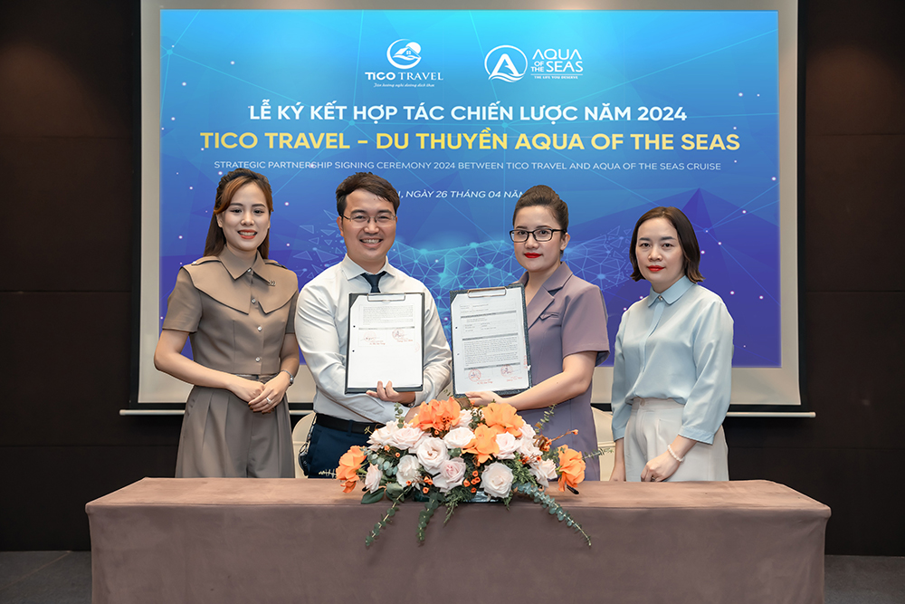 Ngày 26/04/2024, Du thuyền Aqua Of The Seas và Tico Travel đã có buổi lễ ký kết hợp tác chiến lược năm 2024. Sự kiện này không chỉ tạo cơ hội thúc đẩy mối quan hệ giữa hai bên mà còn mở rộng kênh phân phối cho du thuyền Aqua Of The Seas, giúp sản phẩm nhanh chóng tiếp cận khách hàng. Với sự hợp tác này, cả hai bên đều kỳ vọng phát triển thương hiệu và đem lại những trải nghiệm tốt nhất cho khách hàng.